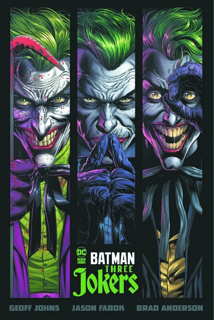 30 years after “The Killing Joke” changed comics forever, “The Three Jokers” re-examines the myth of who, or what, is the Joker and what is at the heart of his ongoing battle with Batman? New York Times bestselling writer Geoff Johns and Jason Fabok, the writer/artist team that waged the “Darkseid War” in the pages of Justice League, reunite to tell the ultimate story of Batman and The Joker!