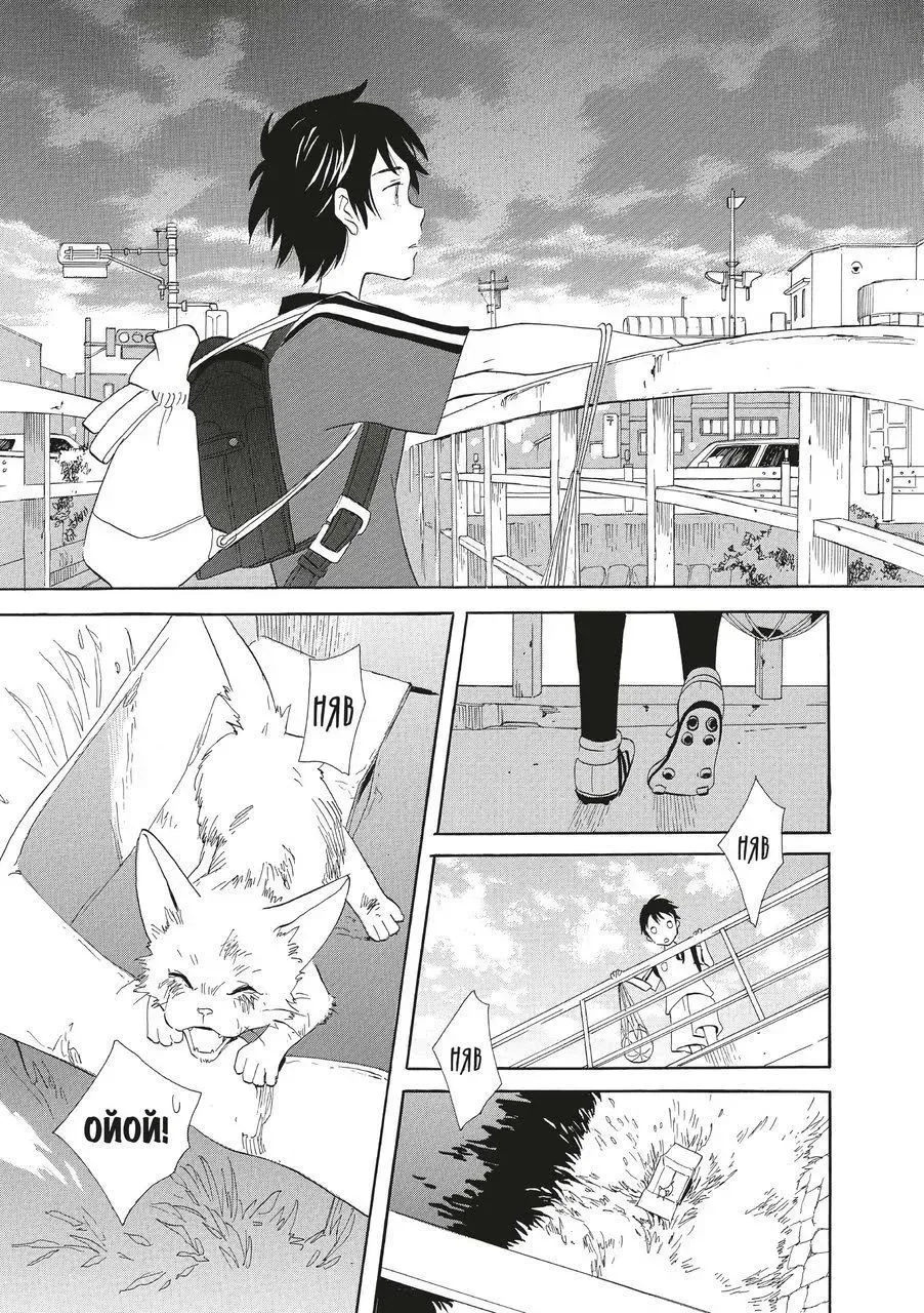 Нацуру ігнорують однокласниці. Та якось він випадково дізнається страшну таємницю однієї з них. Відтоді вони несуть цей тягар удвох. Літо минає, а з ним — і спогади про фестиваль та білого котика на ім’я Тофу.