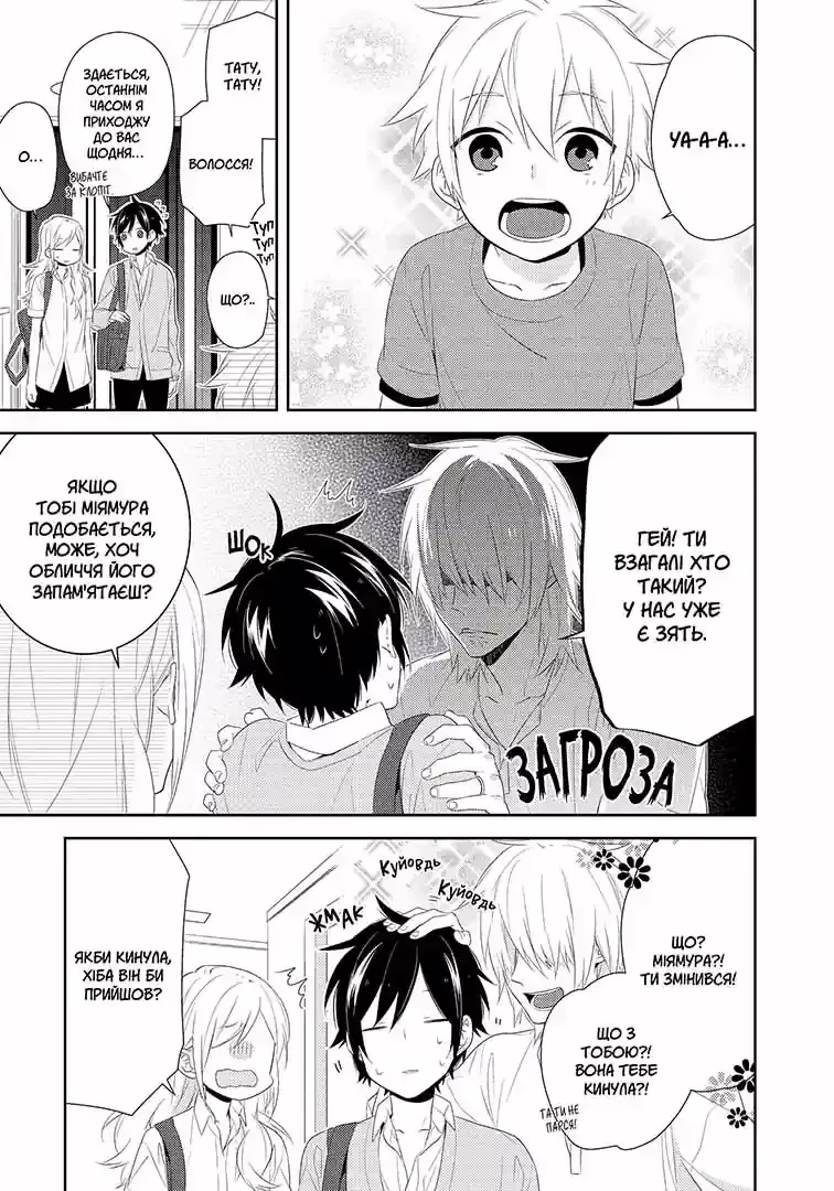 Міямура, стурбований плітками про Хорі, кардинально змінює імідж. Його тепер напросто не впізнають ані однокласники, ані знайомі. Та й друзі також! А Шіндоу навіть влаштовує поминки за старим добрим Міямурою. Інакше ставлення до себе переживати важко, особливо коли тебе починають сприймати як милого хлопчика…
