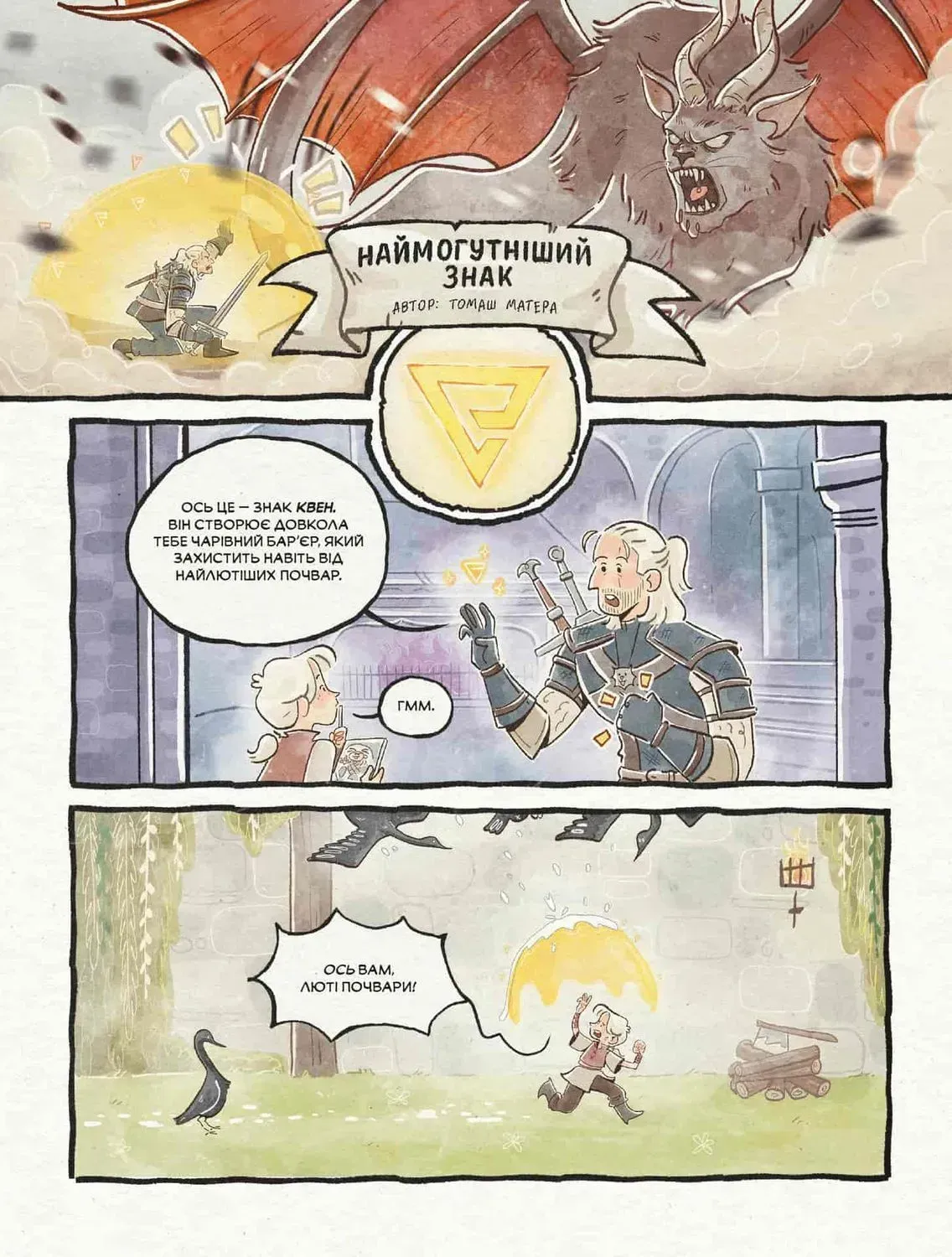 Ці чарівні оповідки про незвичну родину за участю Ґеральта й найближчих друзів Цірі змусять вас сміятися, зітхати й усвідомити, що виховання маленької відьмачки не сильно й відрізняється від виховання всякої іншої дитини. Звісно, у казках на ніч можуть фігурувати монстри, які пукають від несподіванки, а Ґеральт посилатиметься на Відьмачий кодекс, аби змусити Цірі почистити зуби чи прибрати в кімнаті. А втім, навіть грізний Білий вовк знає, що варто піддатися, коли йдеться про вкладання спати чи чаювання з іграшками.