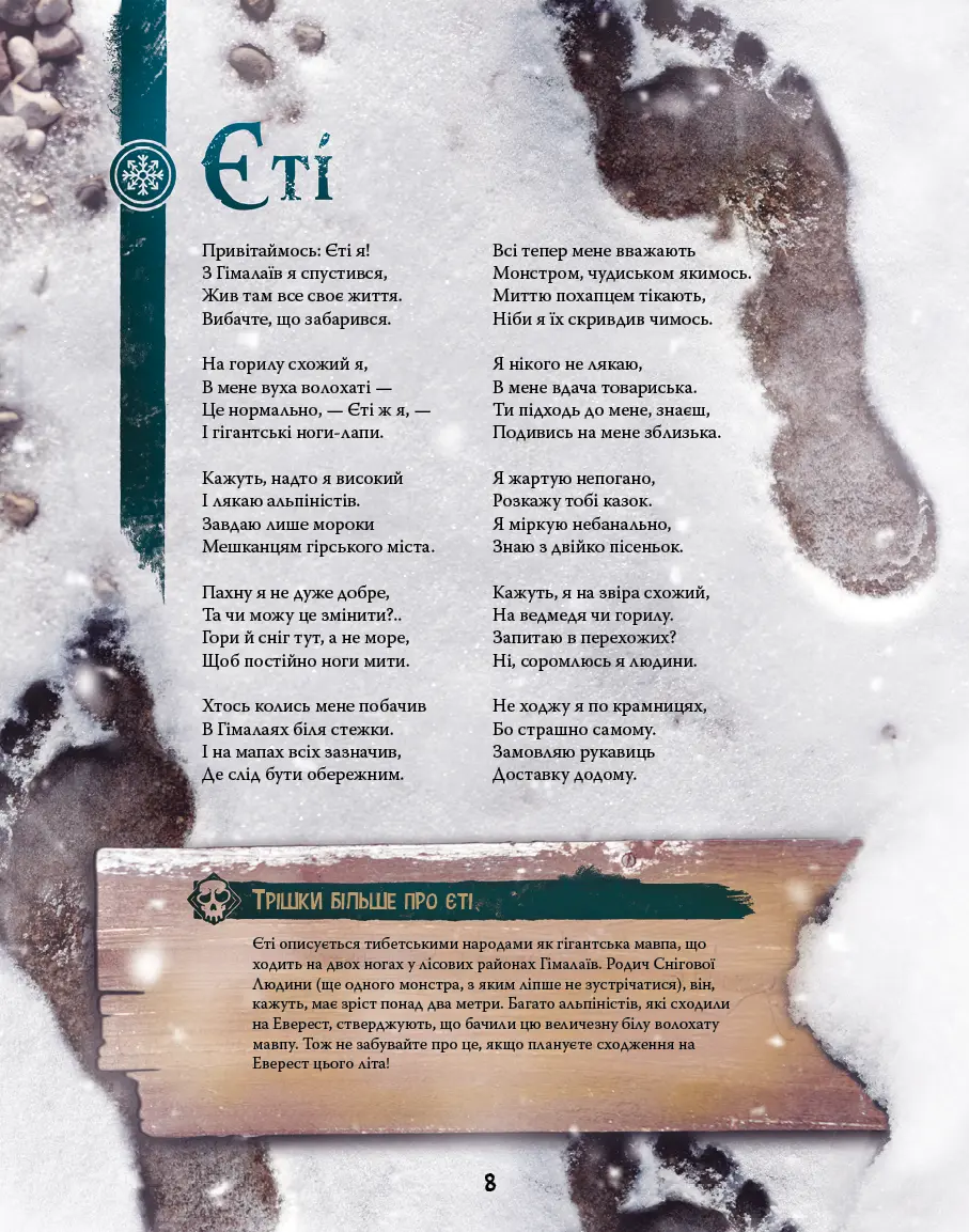 Ви готові зануритися у світ загадкових створінь, які завжди хвилювали уяву людей? Яка головна зброя Ґодзілли, і на кого насправді схожий Єті? Чому Лохнеське чудовисько вирішило явити себе людям, і про що мріє потвора Франкенштайна? У цій неймовірній енциклопедії вам стрінуться привиди, вампіри, сирени та багато інших міфічних істот. Готуйтеся, адже буде і страшно, і смішно водночас! Ця книга не лише розкриє таємниці легендарних монстрів, а й дасть вам змогу поглянути на них з іншого, несподіваного боку.